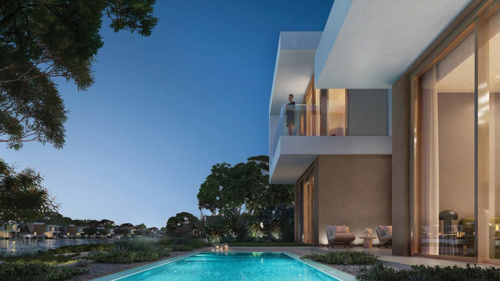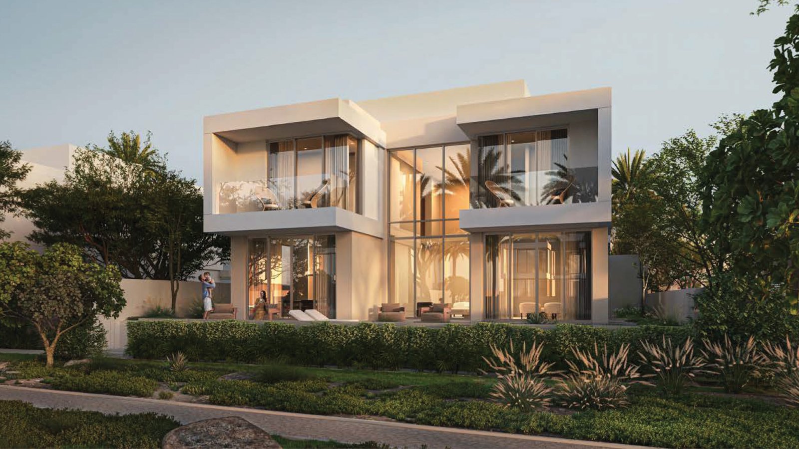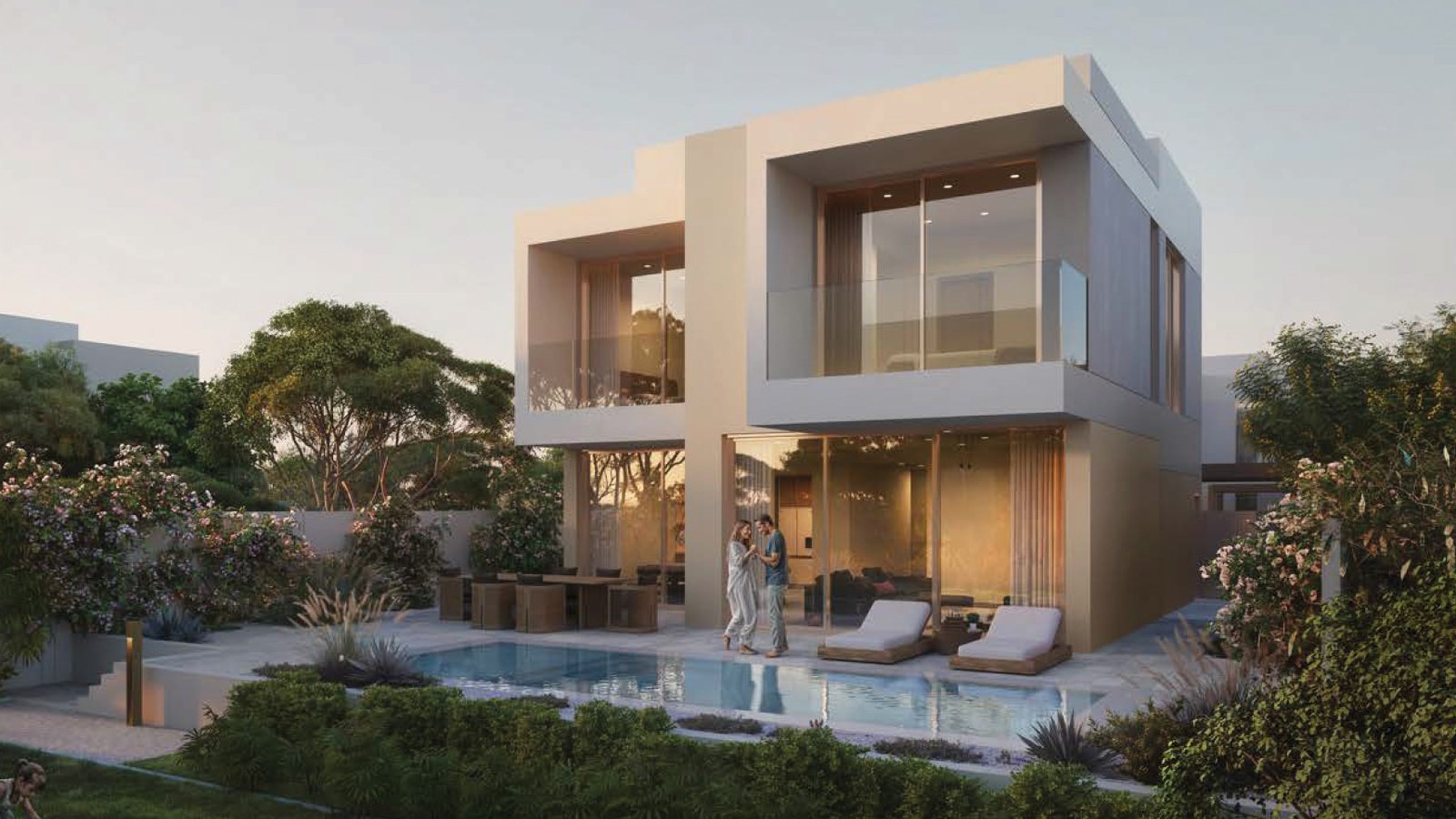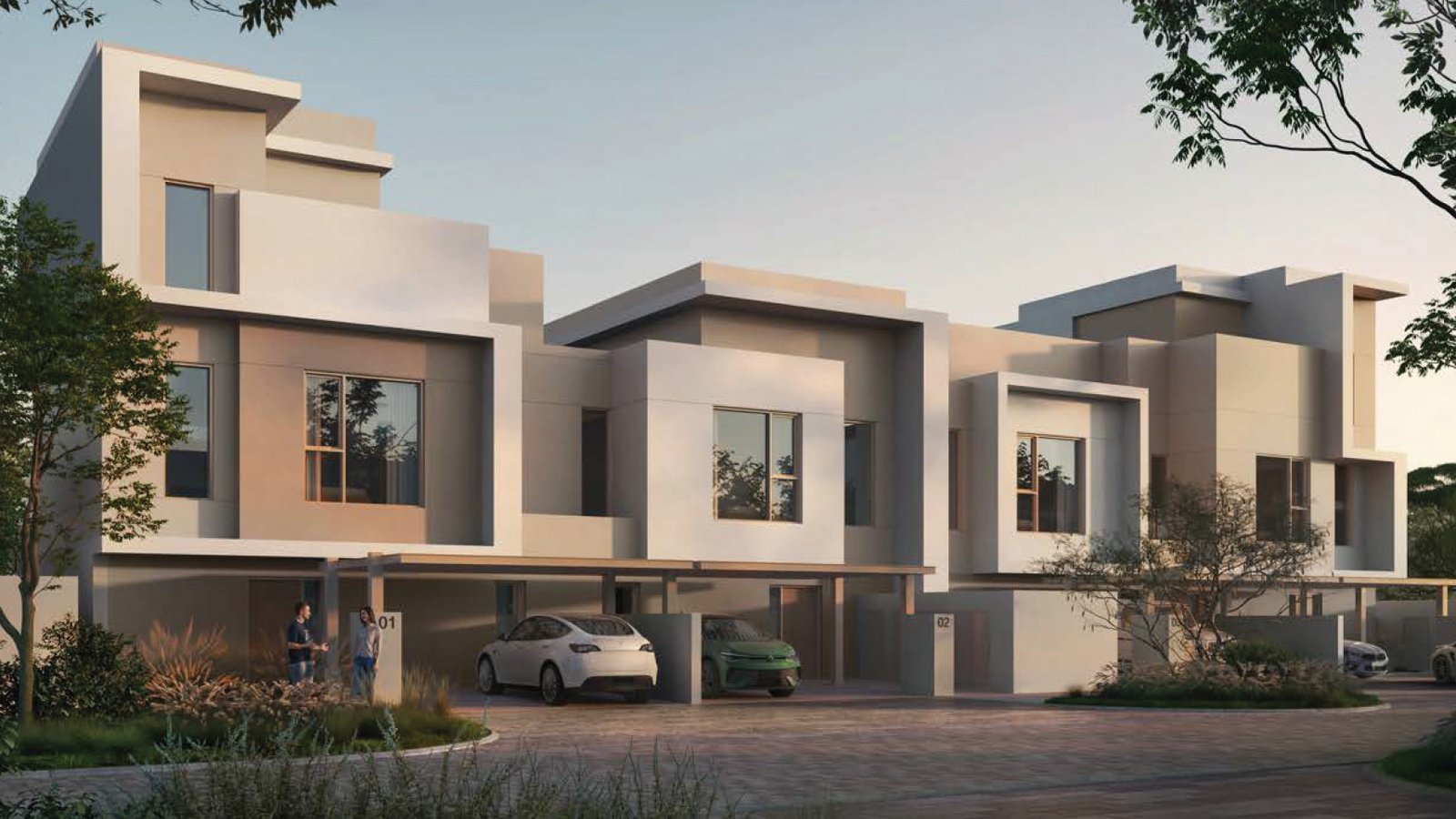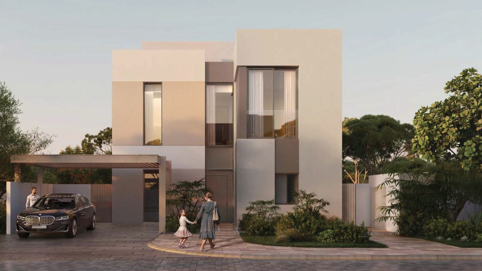 Villas at Bayn start from AED 8.4 million, with BUA sizes ranging from 2,612 to 5,889 sq.ft and plot sizes up to 7,287 sq.ft. Various unit types are available, including 3 to 5-bedroom villas and townhomes.